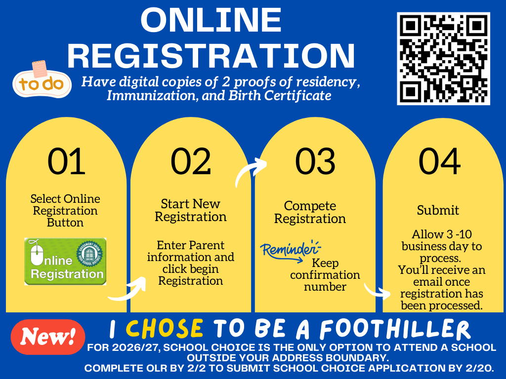 First step to becoming a Foothiller is to get your online registration done ASAP. Enrollments from middle school DO NOT roll over to high school. We are an entirely different district.
